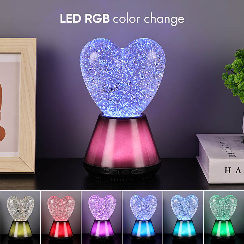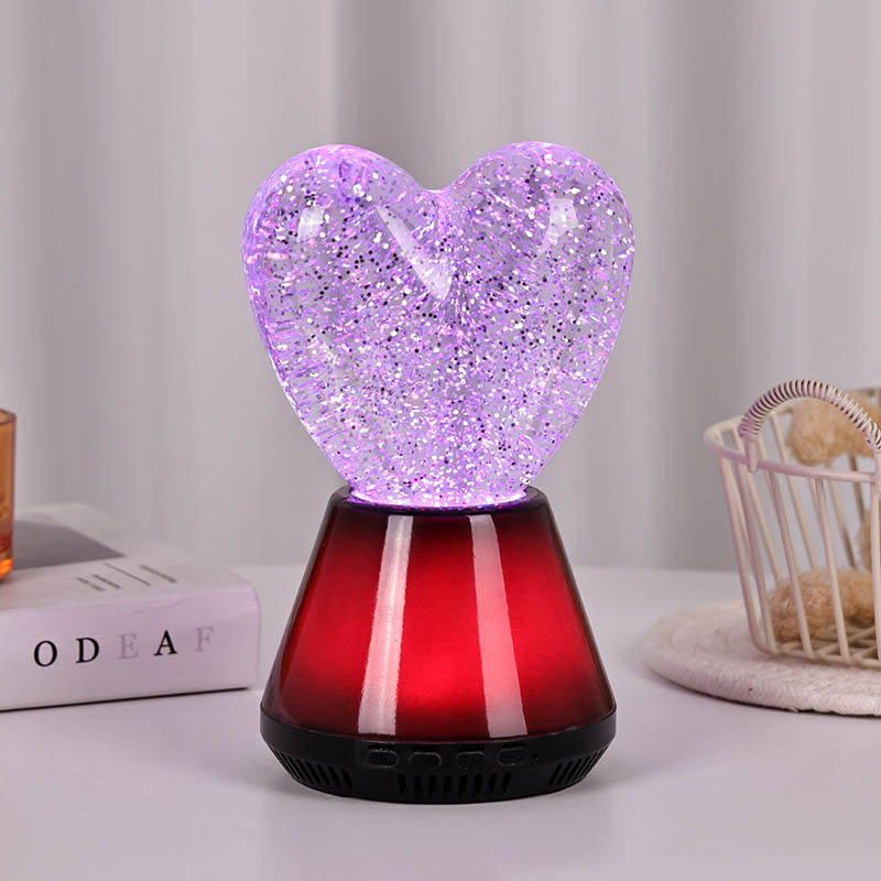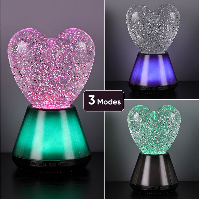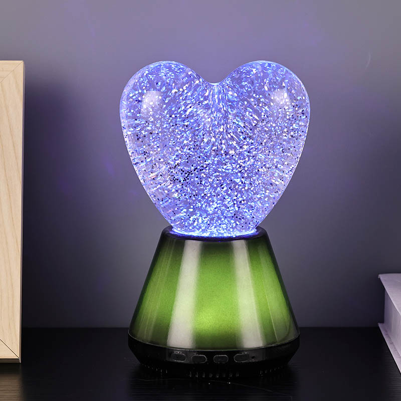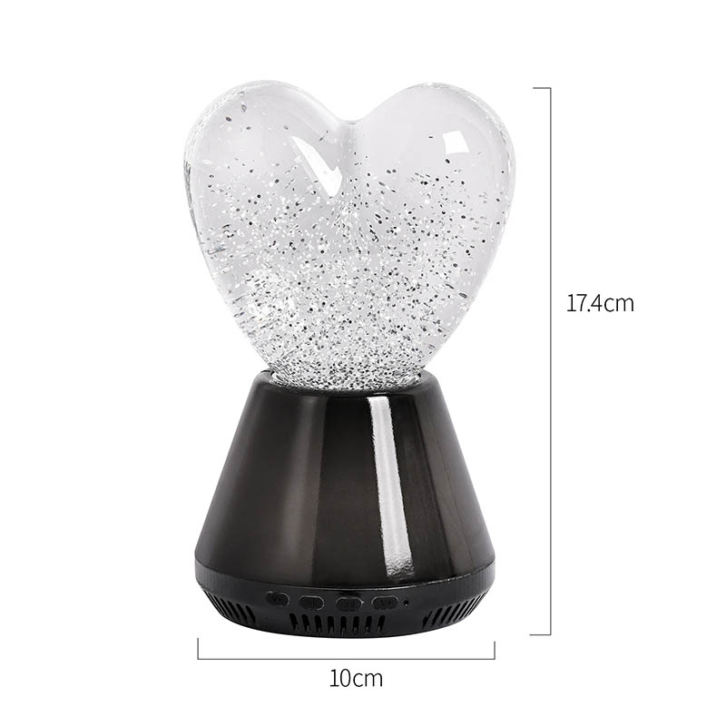 Ang interior ng Bluetooth control na led glitter heart night light ay puno ng misteryosong likido, kung saan lumulutang ang hindi mabilang na kumikinang na mga sequin. Kapag nakabukas ang lampara, dahan-dahang dadaloy ang likido sa loob ng hugis pusong bolang salamin, na lumilikha ng parang panaginip na epekto. Ang mga sequin na ito ay tila nakakalat na mga bituin, malumanay na lumulutang sa likido, na nagbibigay sa mga tao ng pakiramdam na nasa mabituing kalangitan. Maging ito ay araw o gabi, na may lilim ng puso maaari itong magdulot ng sorpresa at kagalakan sa mga bata, na nagpapahintulot sa kanila na ilabas ang kanilang imahinasyon sa panaginip na liwanag.