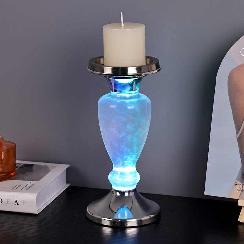 Ang bagong disenyong European na istilong Cloudy Night Light na may Kandila ay may pandekorasyon na kandila sa itaas na maaaring sindihan para sa pag-iilaw, isang transparent na bote ng salamin sa gitna na naglalaman ng likido na may partikular na materyal na formula. Sa loob ng likido, ito ay parang mga ulap at ambon na lumulutang sa kalangitan, na halos kapareho sa isang simulation work. Ang ibaba ay isang metal na base na maaaring gamitin sa 3AAA na baterya. Ang Cloudy Night Light na may Kandila ay napaka-angkop para sa panloob o dekorasyon ng hotel, at maaari ding ilagay sa mga silid-tulugan ng mga bata, na may magandang epekto sa pagpapagaling sa mood.