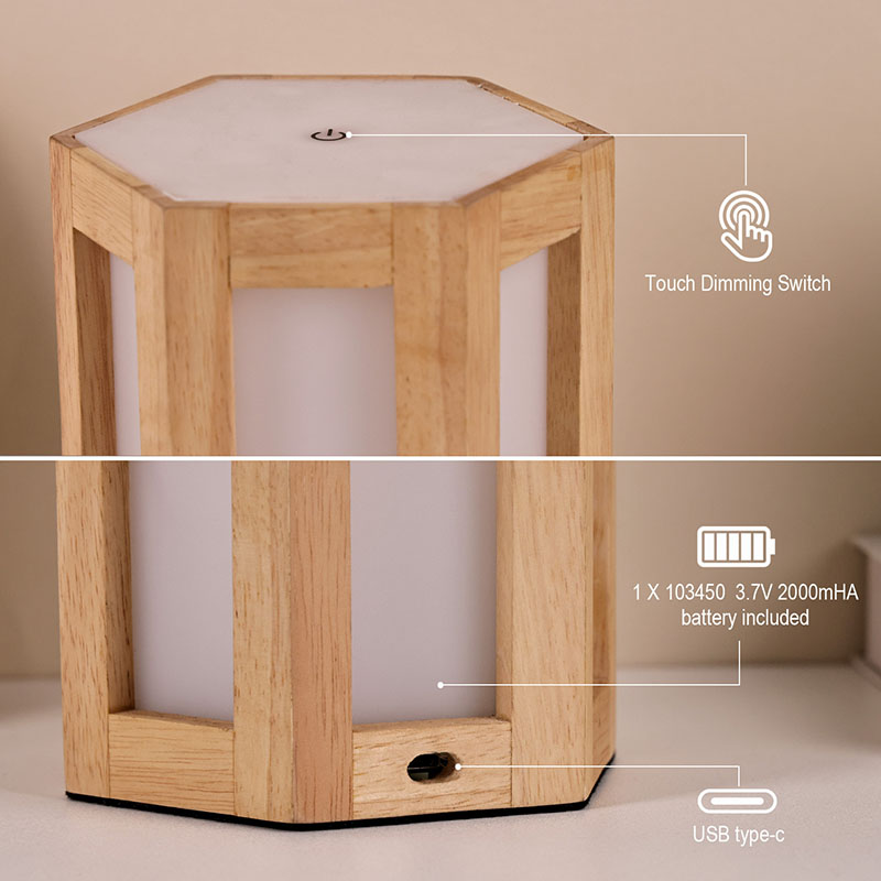 Ang dimmable na kahoy at plastik na night light na ito ay hindi lamang isang praktikal na tool sa pag-iilaw, kundi isang magandang palamuti. Ang cordless led desk lamp na may baterya ay maaaring ilagay sa bedside table upang samahan ka
