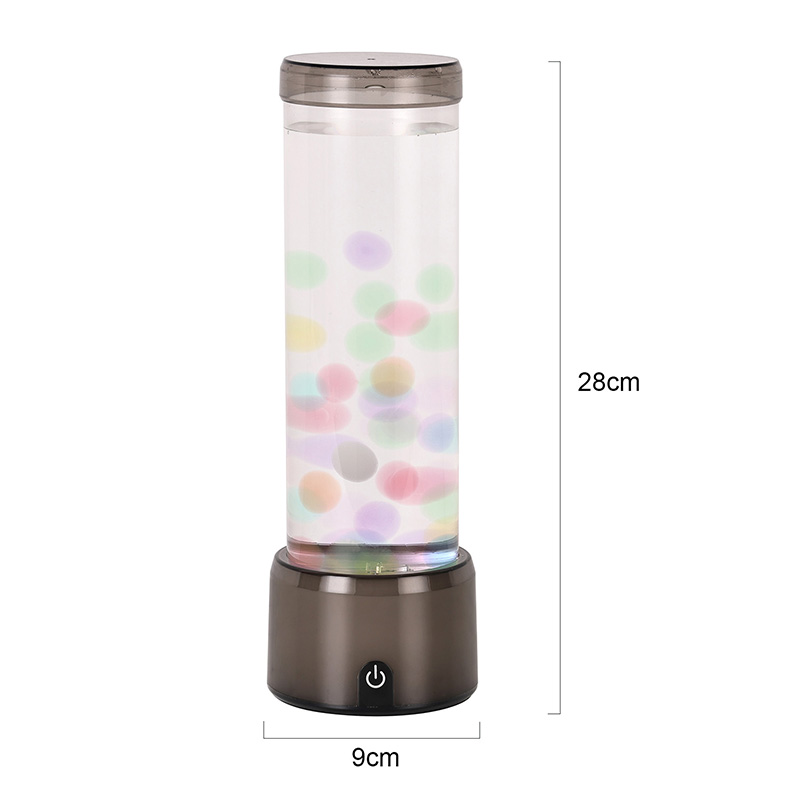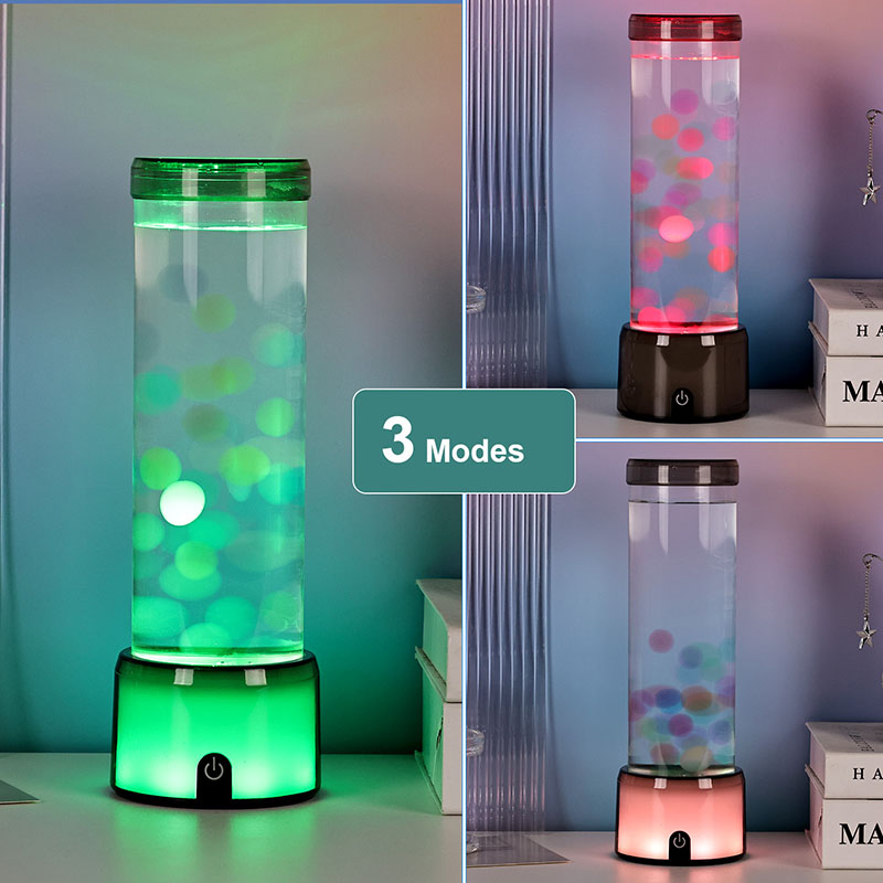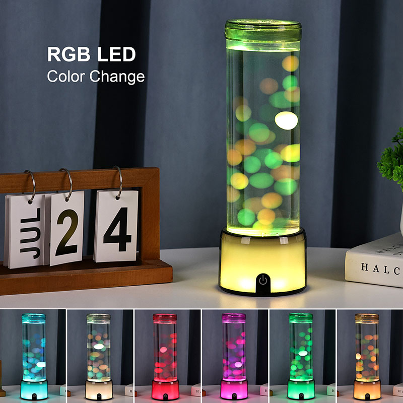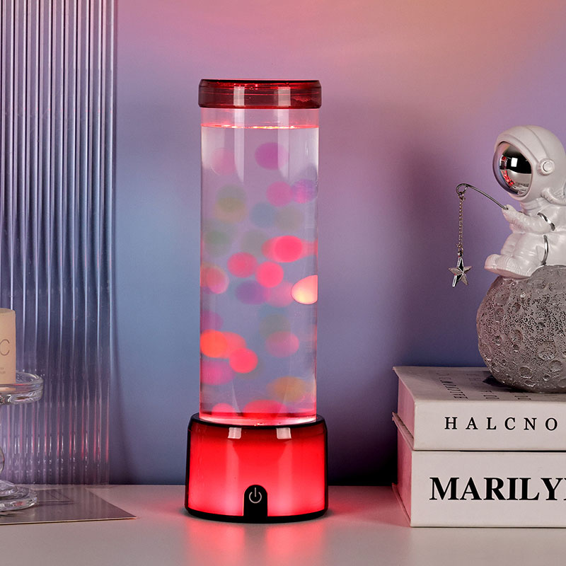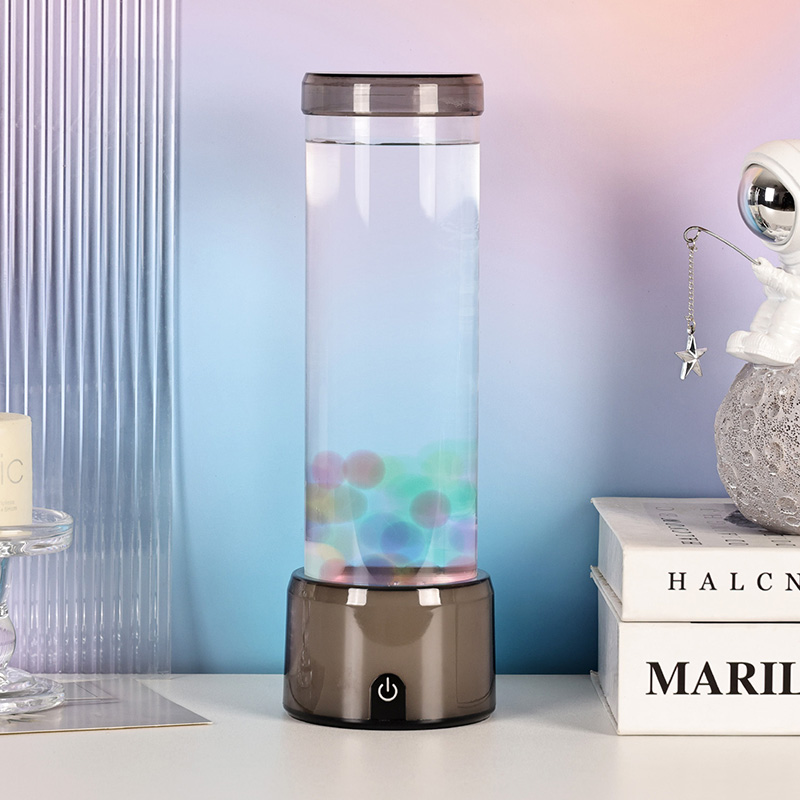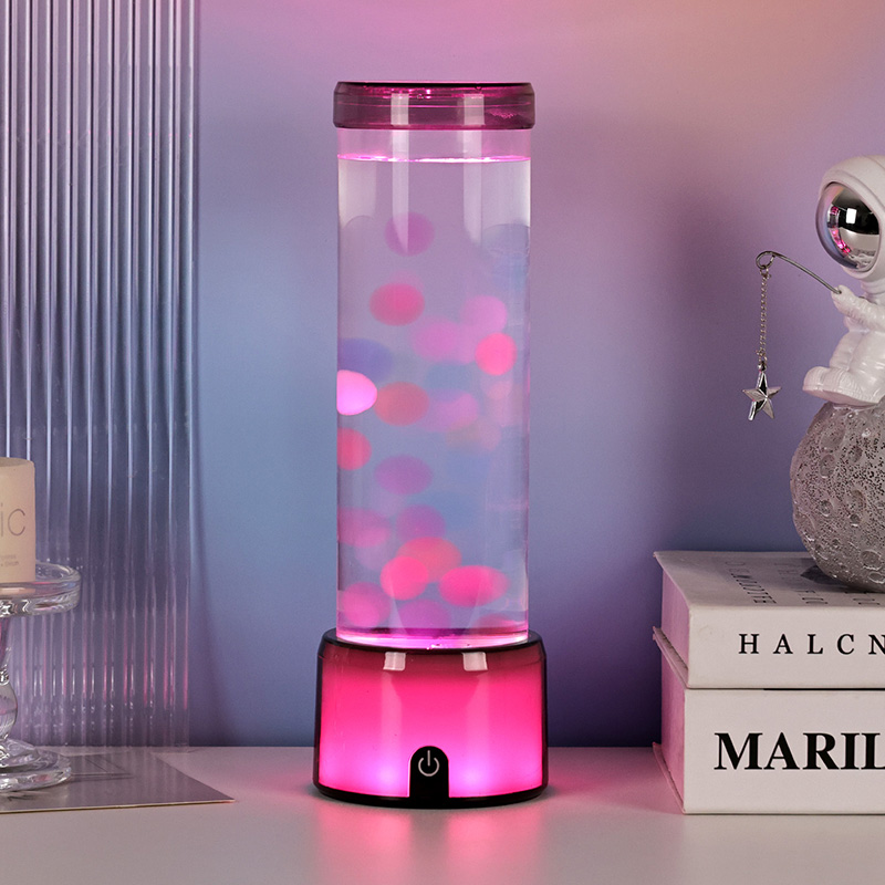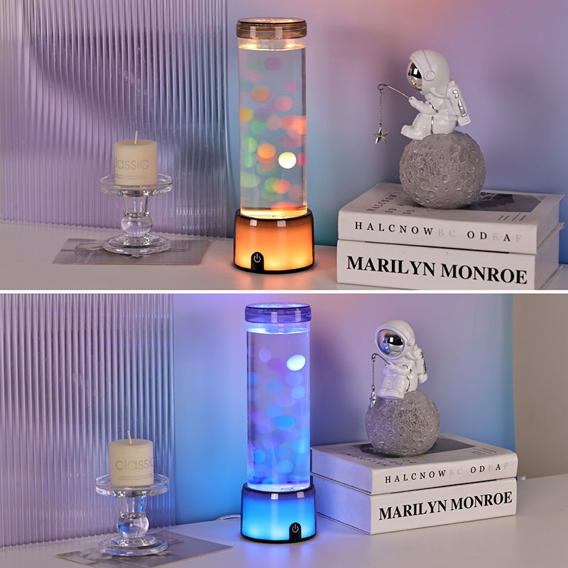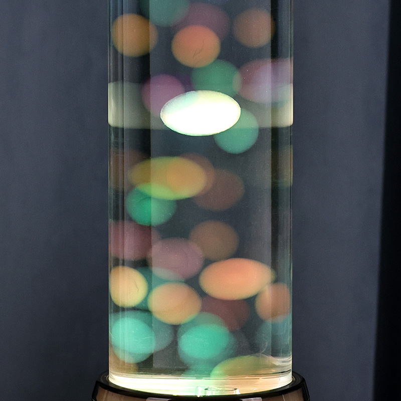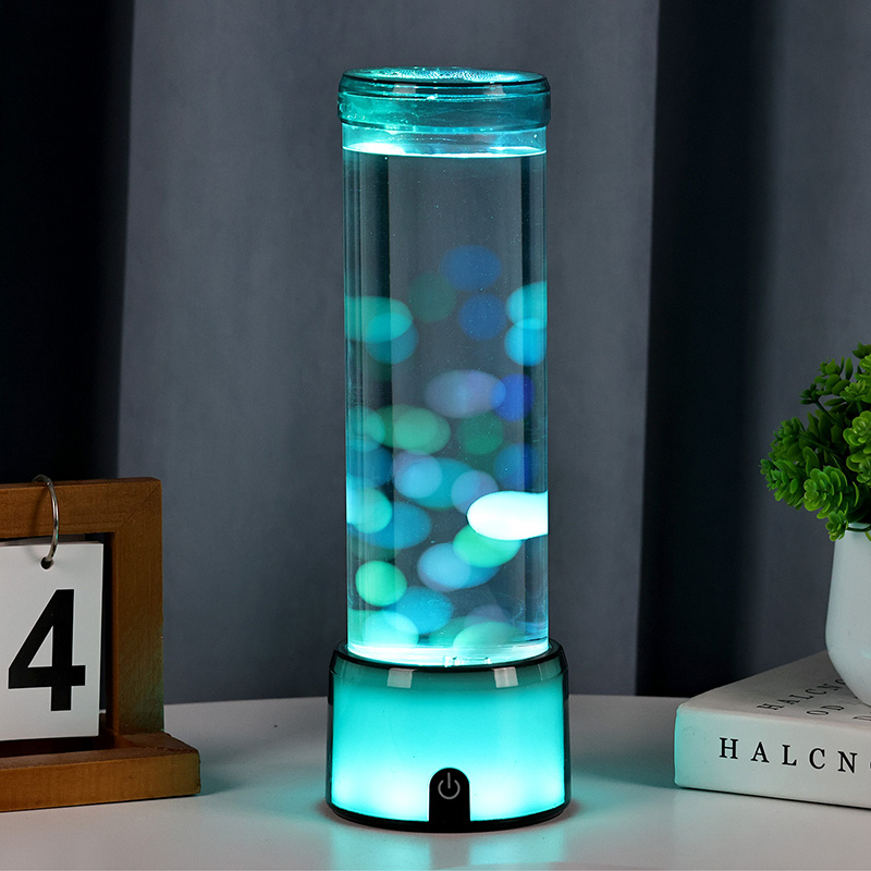 Ang matangkad, eleganteng cylinder na hugis ng lamp ay nagbibigay dito ng moderno, minimalist na hitsura na umaakma sa iba't ibang interior style. Ang transparent na katawan nito ay nagbibigay-daan sa ganap na kakayahang makita ang mga panloob na elemento, kabilang ang lumulutang na dikya at ang kumikinang na mga pagmuni-muni ng liwanag. Ang likido sa loob ay espesyal na binuo upang gayahin ang daloy ng tubig, na nagpapahusay sa pagiging totoo ng lumulutang na paggalaw. Habang nagbabago ang mga kulay ng LED, ang dikya ay lumilitaw na may buhay, nagdaragdag ng lalim at paggalaw sa eksena.