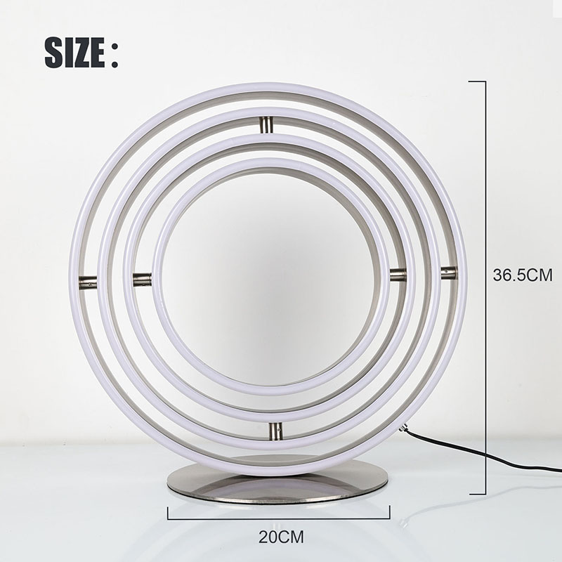 Sa simpleng mga kontrol, ang pagpapatakbo ng Multi-Ring LED Decorative Table Lamp ay walang hirap. Isaksak lang ito, at magsisimula na ang mahika. Ang lampara ay idinisenyo para sa kaginhawahan, na tinitiyak na madali mong magagawa ang perpektong kapaligiran sa pag-iilaw para sa anumang okasyon. Kung gusto mong magtakda ng isang nakakarelaks na mood o magbigay ng nakatutok na pag-iilaw, ang lamp na ito ay nasasakop mo.