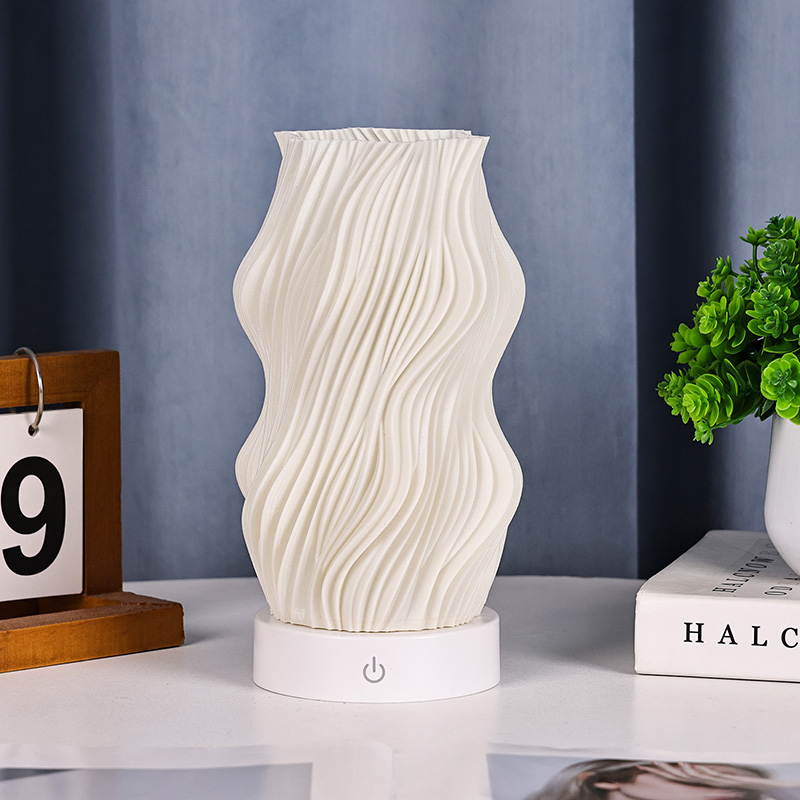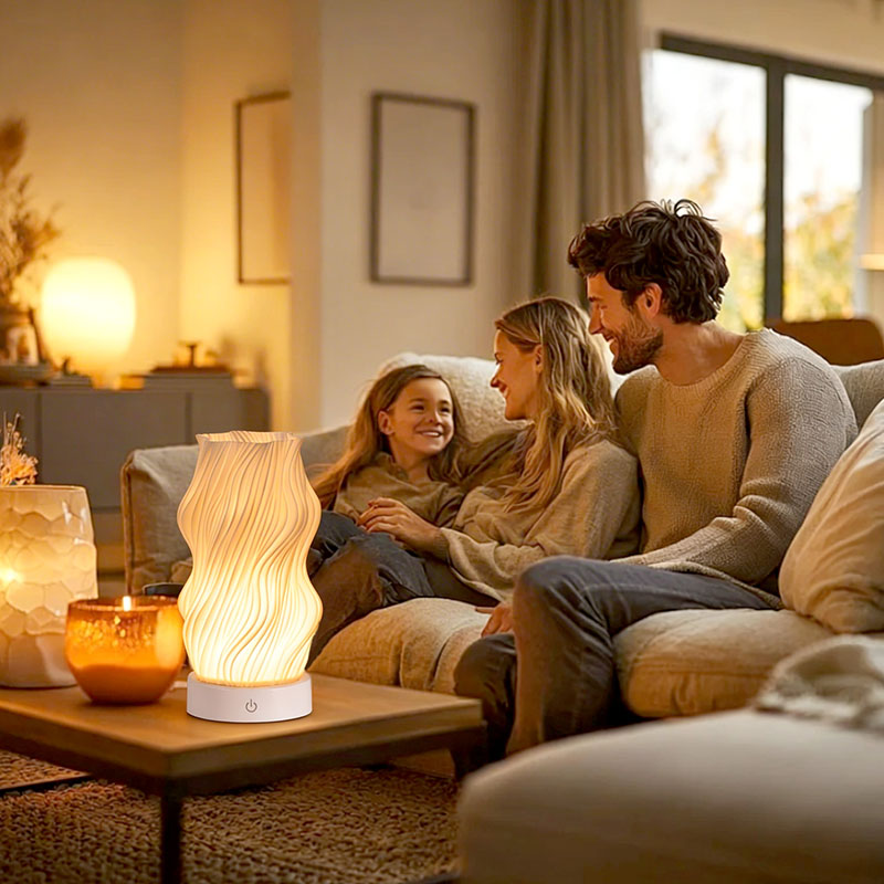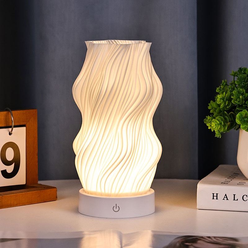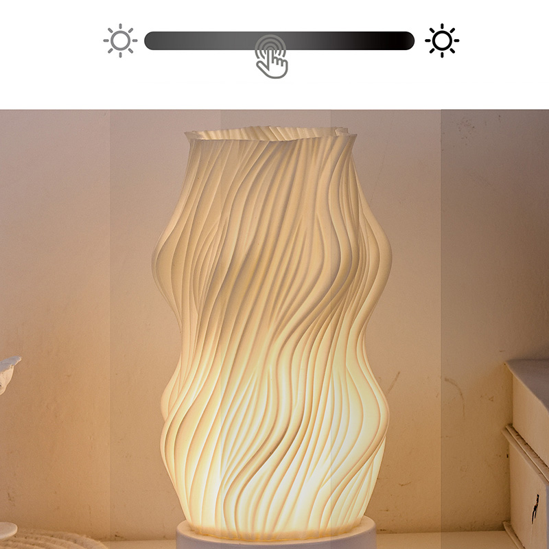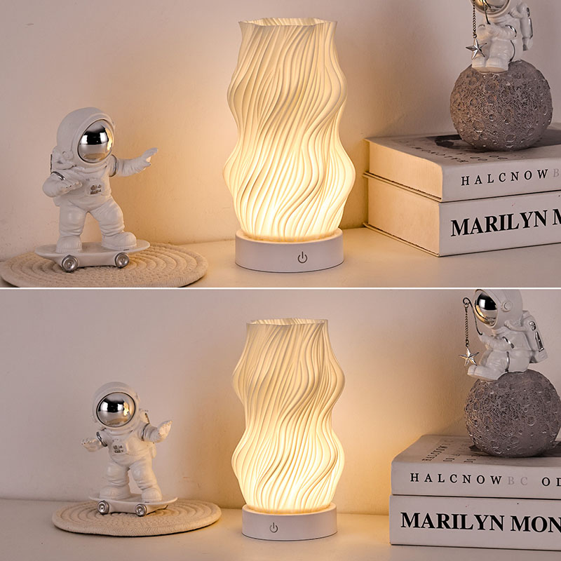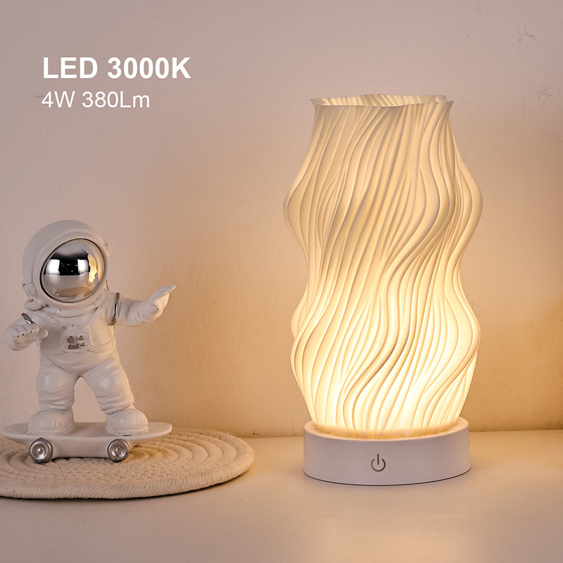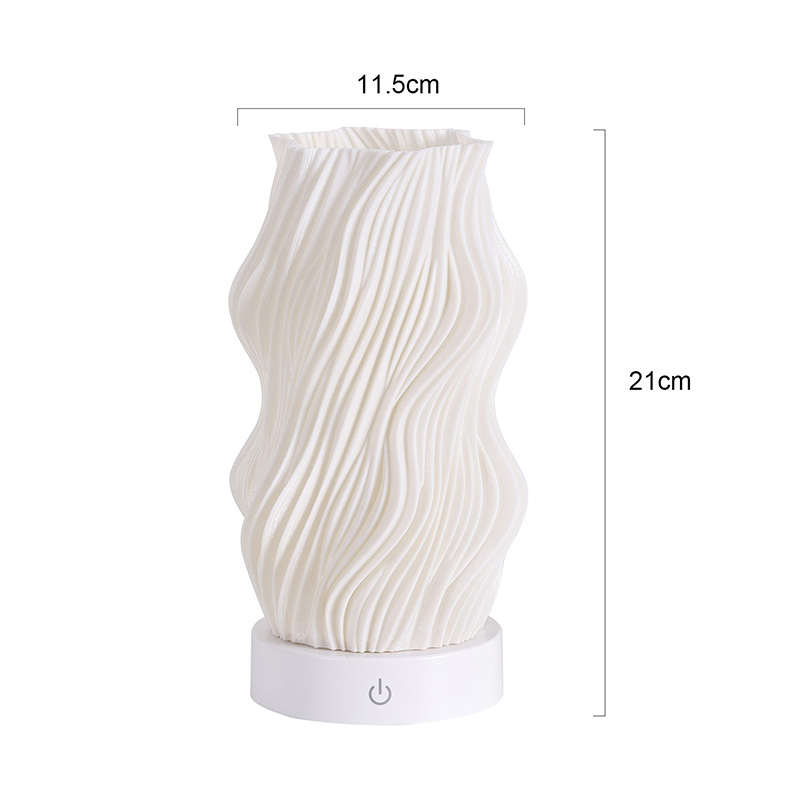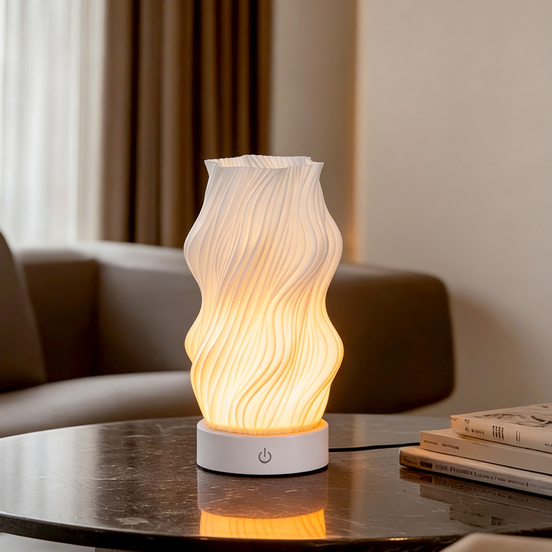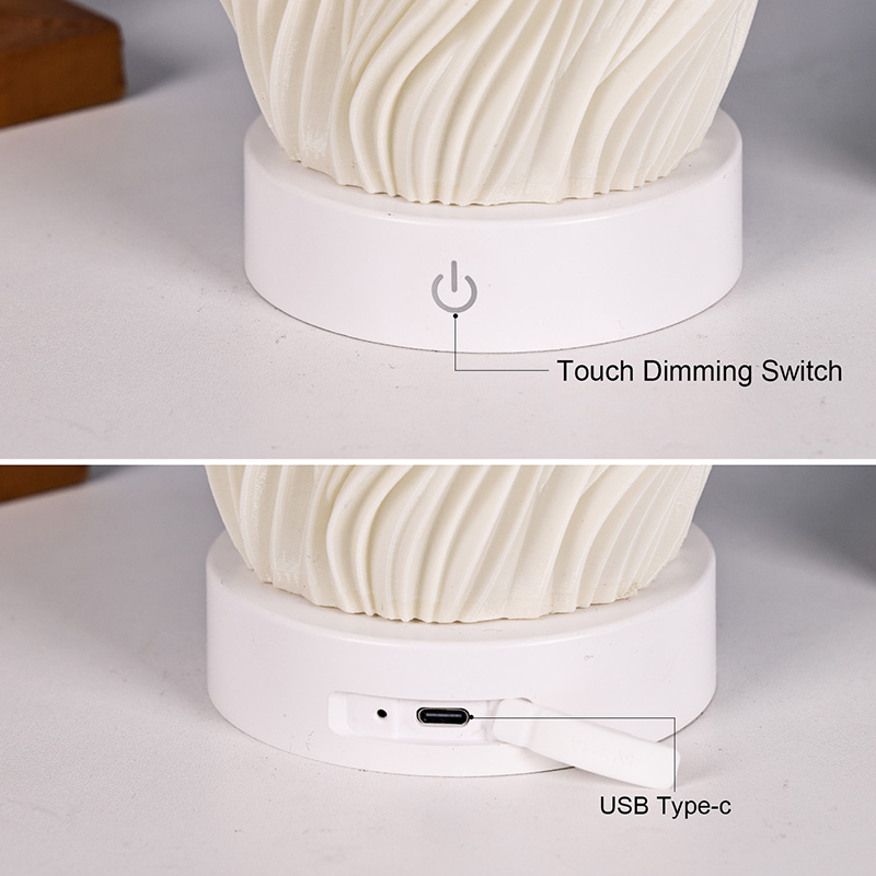 Ginawa mula sa premium na plastik, ang katawan ng Flame Night Light Table Lamp ay(compact) at magaan. Ito ay hindi lamang mainit sa pakiramdam ngunit madaling linisin at ilipat. Pinagsasama ng minimalist na wavy texture na disenyo ang artistikong kagandahan sa pagiging praktikal, na walang kahirap-hirap na pinagsasama sa anumang istilo ng palamuti sa bahay. Ito ay isang perpektong, nakakatipid sa espasyo na piraso ng accent na nagdaragdag ng isang katangian ng kagandahan sa iyong kuwarto.