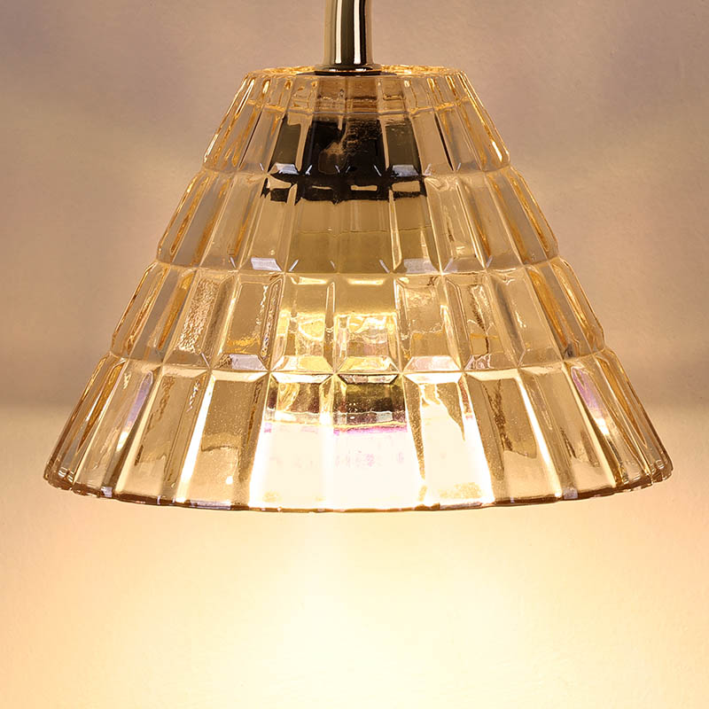 Ang lampshade ay gawa sa transparent na salamin (acrylic), at ang mainit na kulay na ilaw ay napaka-angkop para sa pagbabasa. Ang pinakamalaking selling point ng Glass Shade Table Lamp na may Adjust Hight, bilang karagdagan sa disenyo nito, ay ang height adjustable lamp post na may umiikot na button, at ang lighting range ay maaari ding i-adjust ayon sa taas.