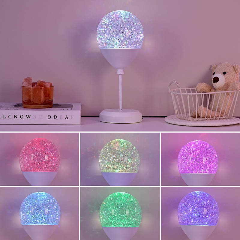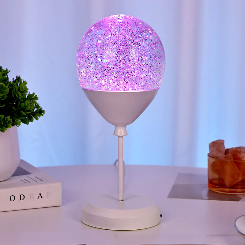 Ang spherical lampshade, na nakapagpapaalaala sa sikat na tropeo, ay ginawa mula sa matibay na plastik na materyal. Sa loob, maliit na 亮片 (glitter particle) sayaw at shimmer habang ang ilaw ay nagbabago ng mga kulay, na lumilikha ng isang nakakainis na visual na epekto. Ang paggalaw ng mga particle na ito sa loob ng lampshade ay nagdaragdag ng isang pakiramdam ng lalim at sukat, na ginagawang mas nakakaakit ang lampara.