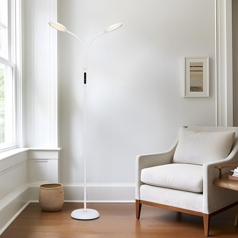 Siyempre, ang isang mahusay na solusyon sa pag -iilaw ay hindi lamang tungkol sa pag -andar; Tungkol din ito sa estilo. Ang aming 2-head 360 ° adjustable LED floor lamp ay dinisenyo na may mga kontemporaryong aesthetics sa isip. Ang malambot, minimalist na disenyo nito ay umaakma sa anumang modernong interior, pagdaragdag ng isang ugnay ng pagiging sopistikado at kagandahan sa iyong puwang.