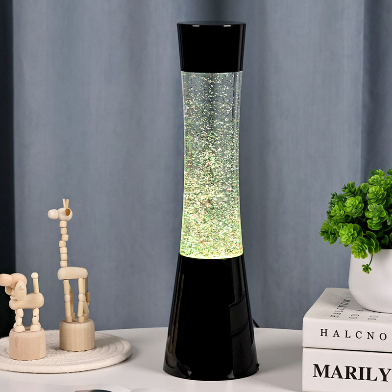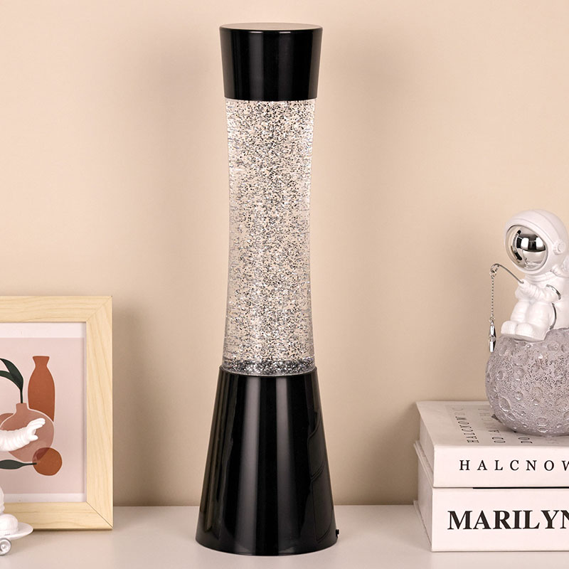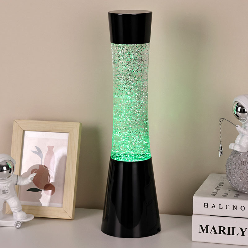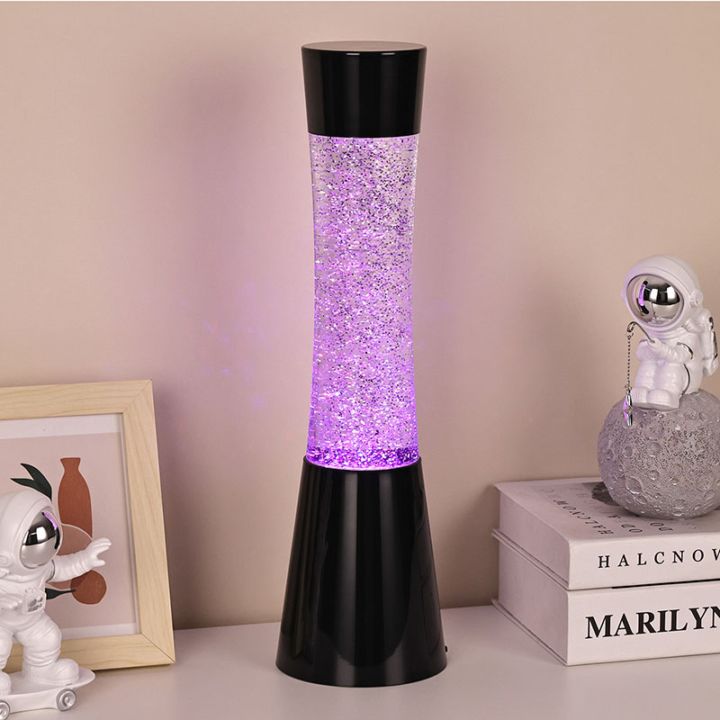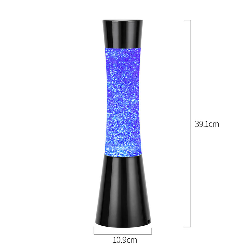 Ang led glitter lava lamp na may 3AAA na baterya ay gawa sa de-kalidad na plastic at metal na materyales, na may mahusay na katatagan at tibay. Ang katawan ng plastik na bote ay pinong pinakintab at ginamot, na nagreresulta sa makinis at pinong ibabaw na may malambot na kinang. Ang base ng metal ay nagbibigay sa lamp ng isang matatag at marangal na texture, na ginagawa itong mas matatag at maaasahan habang ginagamit.