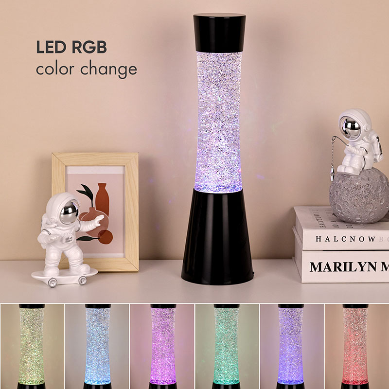 Ang isa pang highlight ng maliit na night light na ito ay ang likido at kumikinang na disenyo nito sa loob. Ang likido ay naglalaman ng isang malaking halaga ng kinang, na kumikinang nang maliwanag sa ilalim ng pag-iilaw ng liwanag, na parang hindi mabilang na mga bituin ay kumikislap sa kalangitan sa gabi. Habang dumadaloy ang likido, hindi regular na magkakalat ang kinang, na lumilikha ng parang panaginip na visual effect. Ang led glitter lava lamp na may 3AAA na baterya ay mayroon ding RGB color lighting function. Sa pamamagitan ng advanced na teknolohiya ng LED, ang mga lighting fixture ay maaaring maglabas ng malambot at pare-parehong liwanag, at malayang ayusin ang kulay ng liwanag ayon sa iba't ibang mga eksena at pangangailangan. Maaari mong piliin ang iyong paboritong kulay o awtomatikong baguhin ang mga kulay ng mga fixture ng ilaw upang lumikha ng isang makulay na visual na kapistahan.