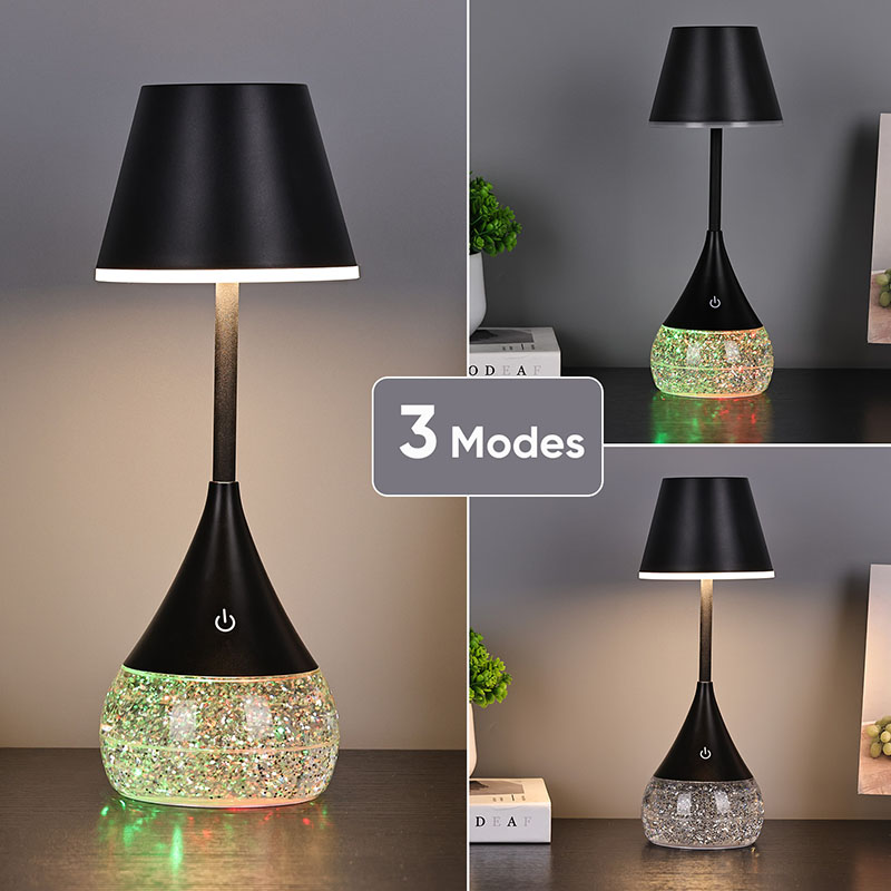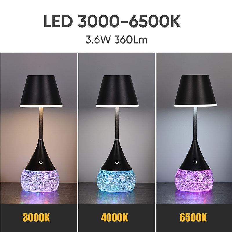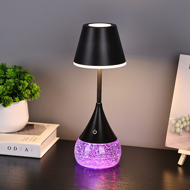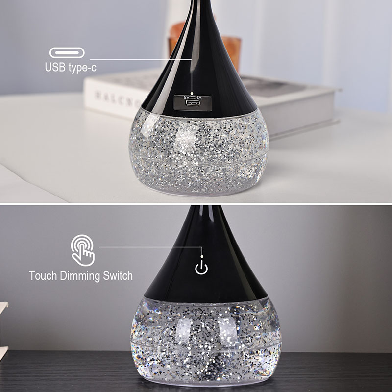 Sa loob ng base, ang isang malinaw na bote ay naglalagay ng isang likido na gumagalaw nang hindi regular, na lumilikha ng isang nakakaakit na visual na epekto. Ang likidong base ng LED desk na may hugis ng metal ay hindi anumang ordinaryong likido; Ito ay espesyal na nabalangkas upang lumikha ng isang nakakalibog na sayaw ng shimmer at swirl. Habang gumagalaw ang likido, sumasalamin ito ng ilaw sa isang patuloy na pagbabago ng pattern, na lumilikha ng isang patuloy na umuusbong na karanasan sa visual.