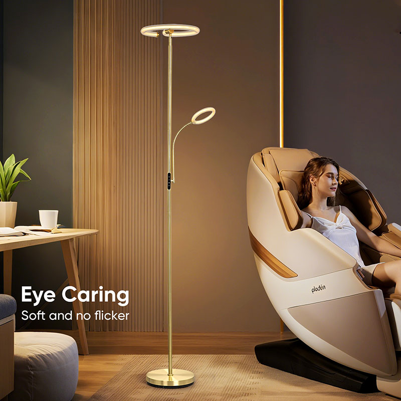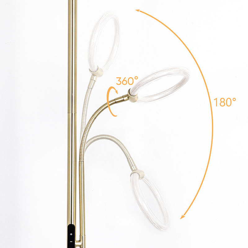 Ang Luxury Gold na led floor lamp para sa sala ay nilagyan ng advanced na silicone tube na 360 degree na teknolohiya sa pag-iilaw, na naglalabas ng malambot at pare-parehong liwanag, na epektibong nagbibigay-liwanag sa buong espasyo. Ang mga silikon na tubo ay may mahusay na kakayahang umangkop at tibay, at maaaring makatiis sa iba't ibang mga kondisyon sa kapaligiran upang matiyak ang katatagan at kaligtasan