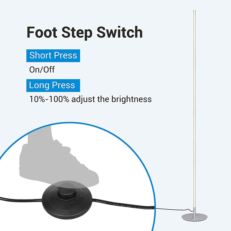Dinisenyo nang may kaginhawaan sa isip, ang aming LED floor lamp ay nagtatampok ng foot switch para sa madaling operasyon. Ihakbang lang ang switch para i-on o i-off ang lamp, na ginagawang madali upang makontrol ang ilaw nang hindi kinakailangang maghanap ng mga button o switch. Ang maalalahanin na detalye ng disenyo na ito ay nagpapahusay sa pangkalahatang karanasan ng gumagamit, na tinitiyak na ang pagpapatakbo ng lamp ay kasing simple at intuitive hangga't maaari.