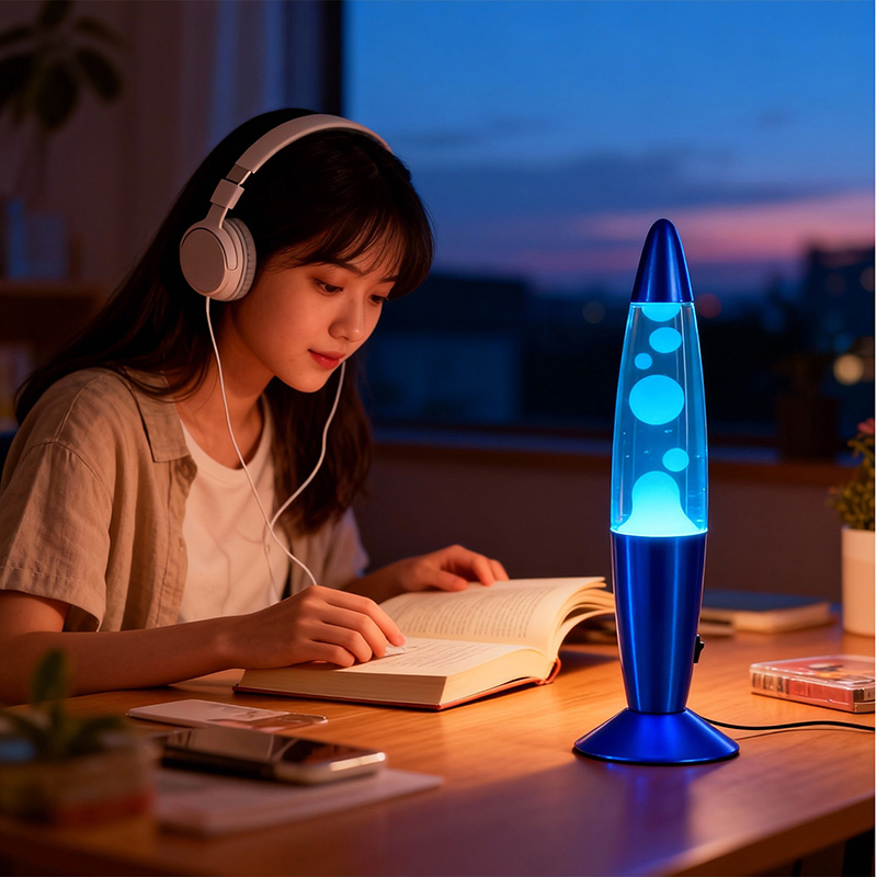 Ang banayad na daloy ng wax, na iluminado ng isang mainit na panloob na LED bulb, ay gumagawa ng malambot, nakapaligid na glow na nagpapaganda ng pagpapahinga at nagpapababa ng stress. Nagpapahinga ka man pagkatapos ng mahabang araw o naghahanap ng inspirasyon sa mga tahimik na sandali, ang maindayog na galaw ng lava lamp ay nagbibigay ng nakakarelaks na visual na karanasan.
