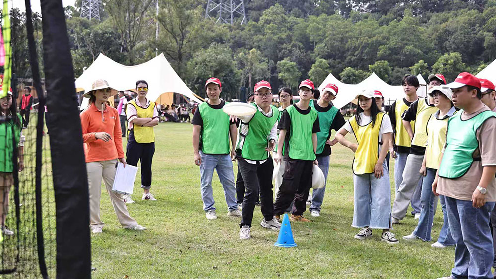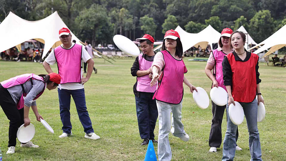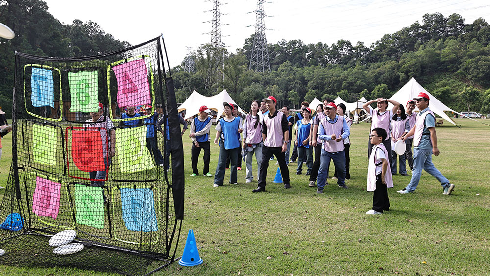 Limang proyekto: Frisbee Nine Palace Grid 🥏 Panuntunan: Ihagis ang frisbee mula sa 3 metro ang layo, i-shoot pababa ang Nine Grid Plate at makakuha ng 3 pagkakataon bawat tao. Mag-ipon ng mataas na marka upang manalo. Oras: 20 minuto. Highlight: Precision vs. luck competition!
