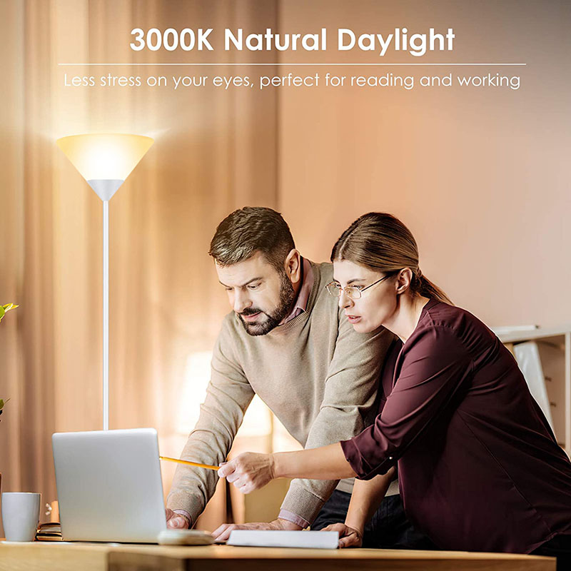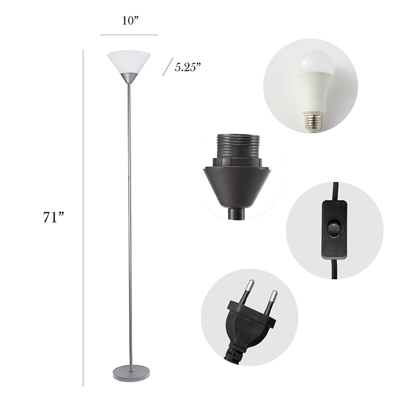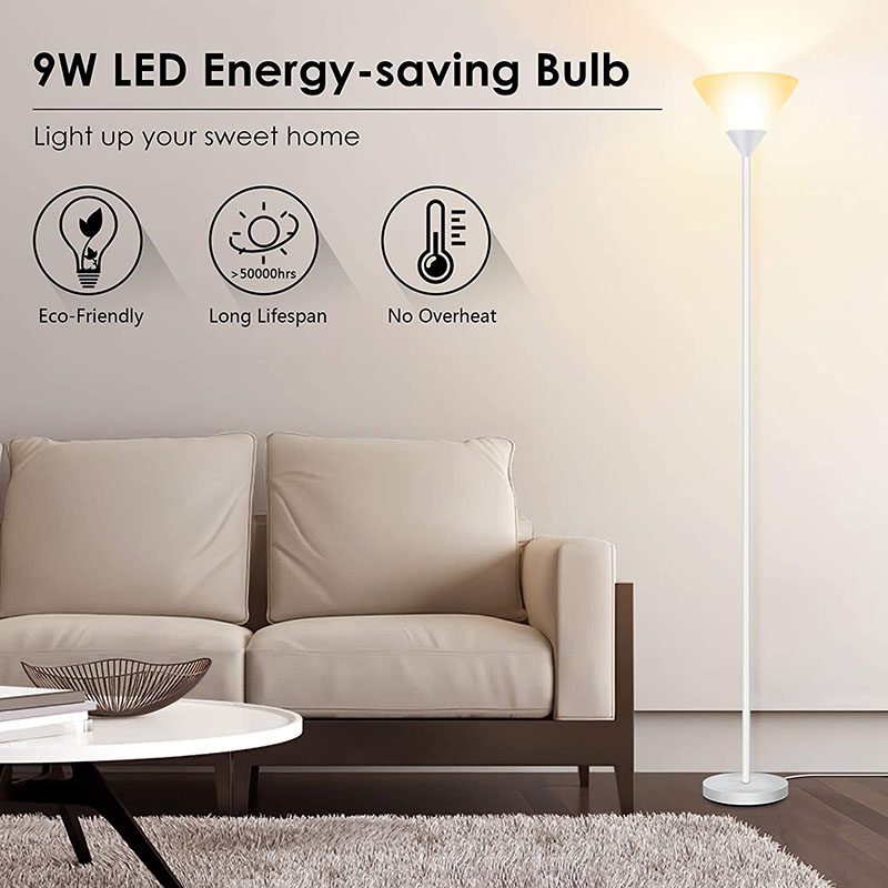 ang takip ng lampara sa sahig na may 9W LED na bumbilya na nakakatipid ng enerhiya. Ang bombilya ng produkto ay umiilaw paitaas upang maiwasan ang pagsisilaw at protektahan ang iyong mga mata.