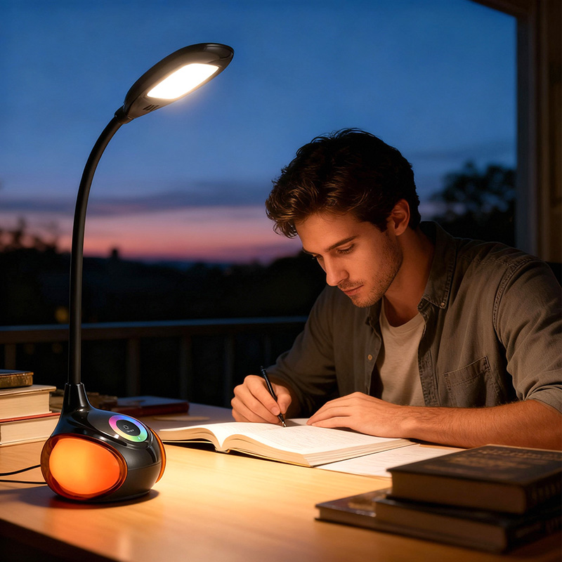Bilang karagdagan, ang desk lamp ay maaari ding ilawan ang desk lamp 360 degrees nang walang patay na mga anggulo