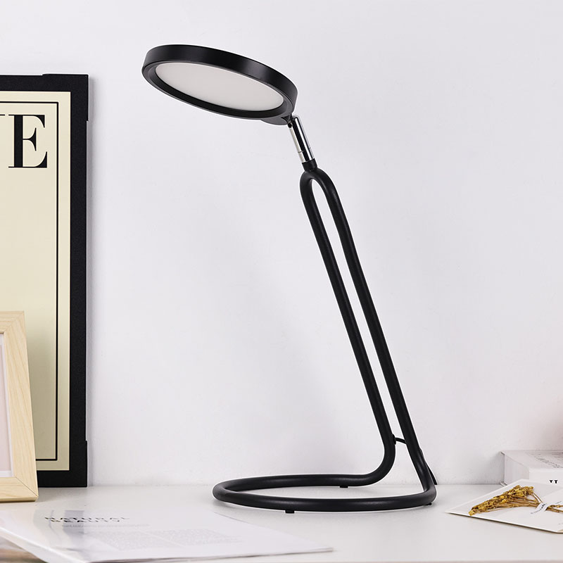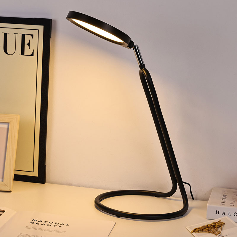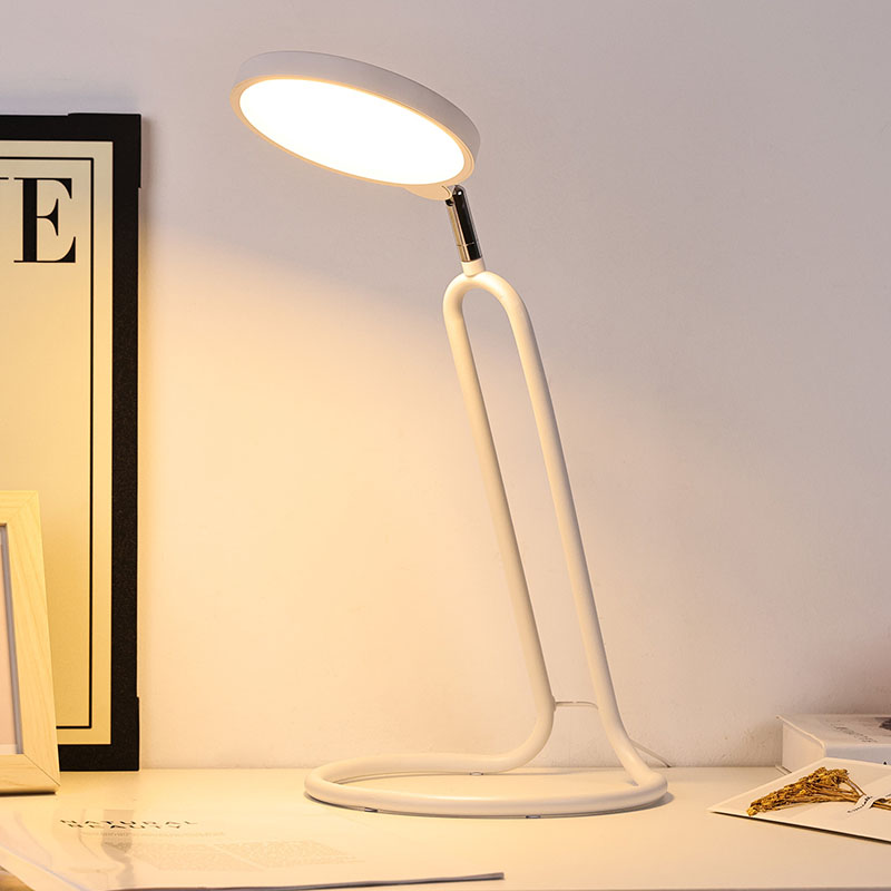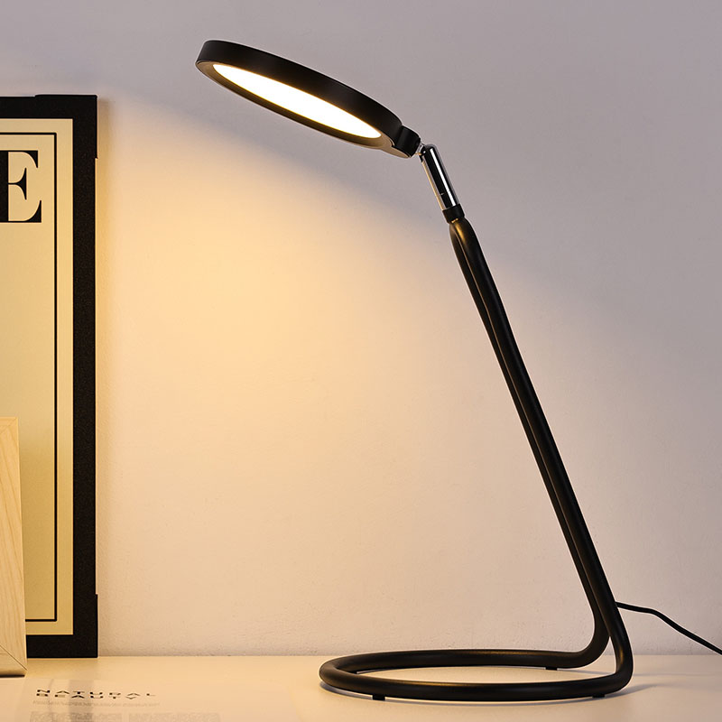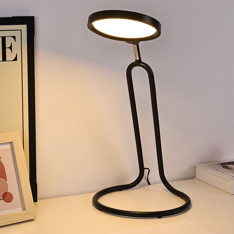 Ang pagiging simple ng LED desk lamp ay nagtatampok ng isang kapansin -pansin na itim at puting kulay na scheme, na may isang hubog na metal stand na sumusuporta sa isang bilog, puti o magaan na dilaw na lampshade. Ang disenyo na ito ay hindi lamang mukhang kamangha -manghang ngunit nagsisilbi ring magbigay ng malambot, nakapaligid na pag -iilaw na nagbabago sa iyong silid sa isang maginhawang kanlungan.