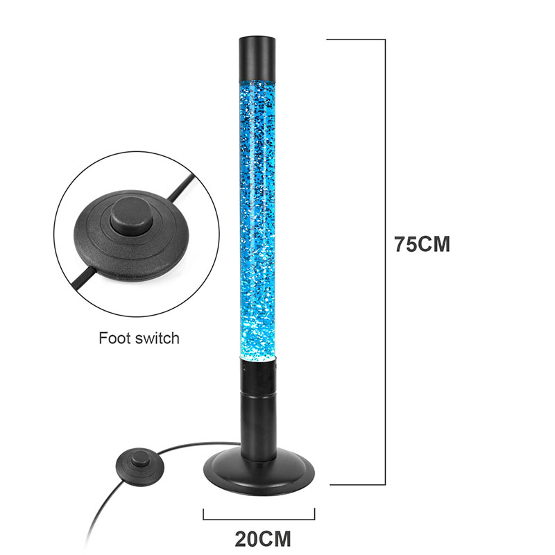Ang Wholesale Blue water glitter hotel decor lamp ay gumagamit ng simple at modernong istilo ng disenyo, na may makinis at dynamic na pangkalahatang hugis. Ang base ng itim na metal ay matatag at eleganteng, na bumubuo ng isang matalim na kaibahan sa transparent na haligi ng salamin, na nagha-highlight ng isang marangal at eleganteng kapaligiran. Ang haligi ng salamin ay puno ng mga kumikinang na sequin, at sa ilalim ng pag-iilaw ng mga ilaw, tila hindi mabilang na mga bituin ang sumasayaw sa kalangitan sa gabi, na lumilikha ng isang panaginip na kapaligiran. Inilagay man sa sala, silid-tulugan, o pag-aaral, ang lampara sa sahig na ito ay maaaring maging isang gawa ng sining, na nagpapaganda ng lasa at istilo ng buong espasyo